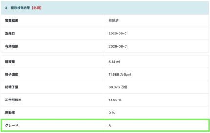 精子マッチングサイトのReprokoで精子検査の登録をしました。最高ランクのAでした。妊娠の可能性は「非常に高い」とのこと。