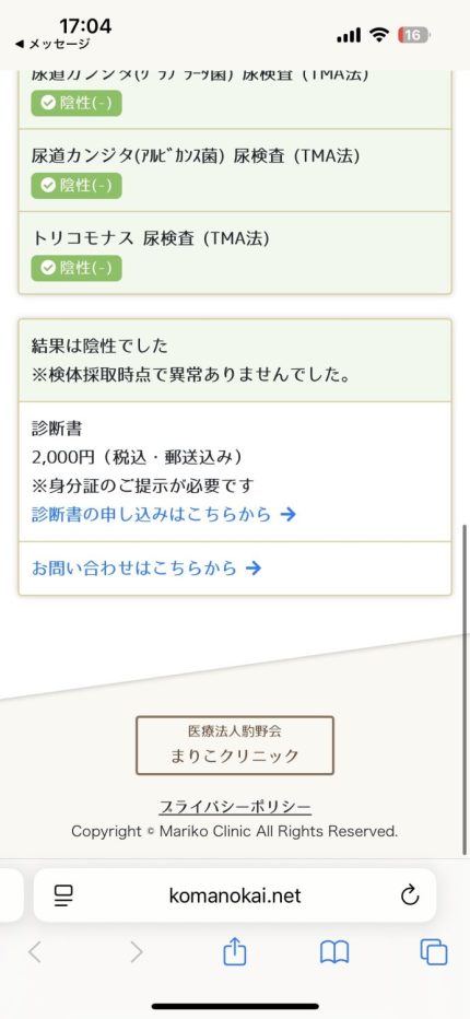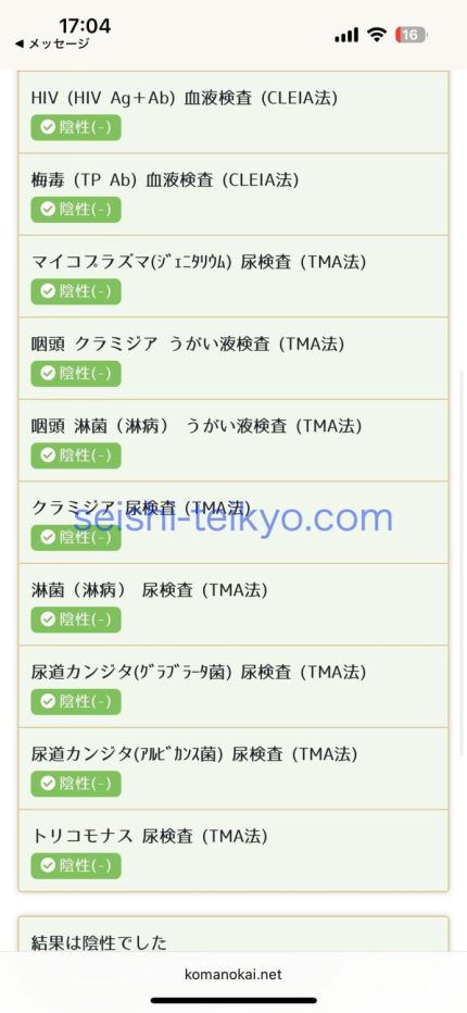 2025年7月29日に性病検査を受けました。すべて陰性です。
