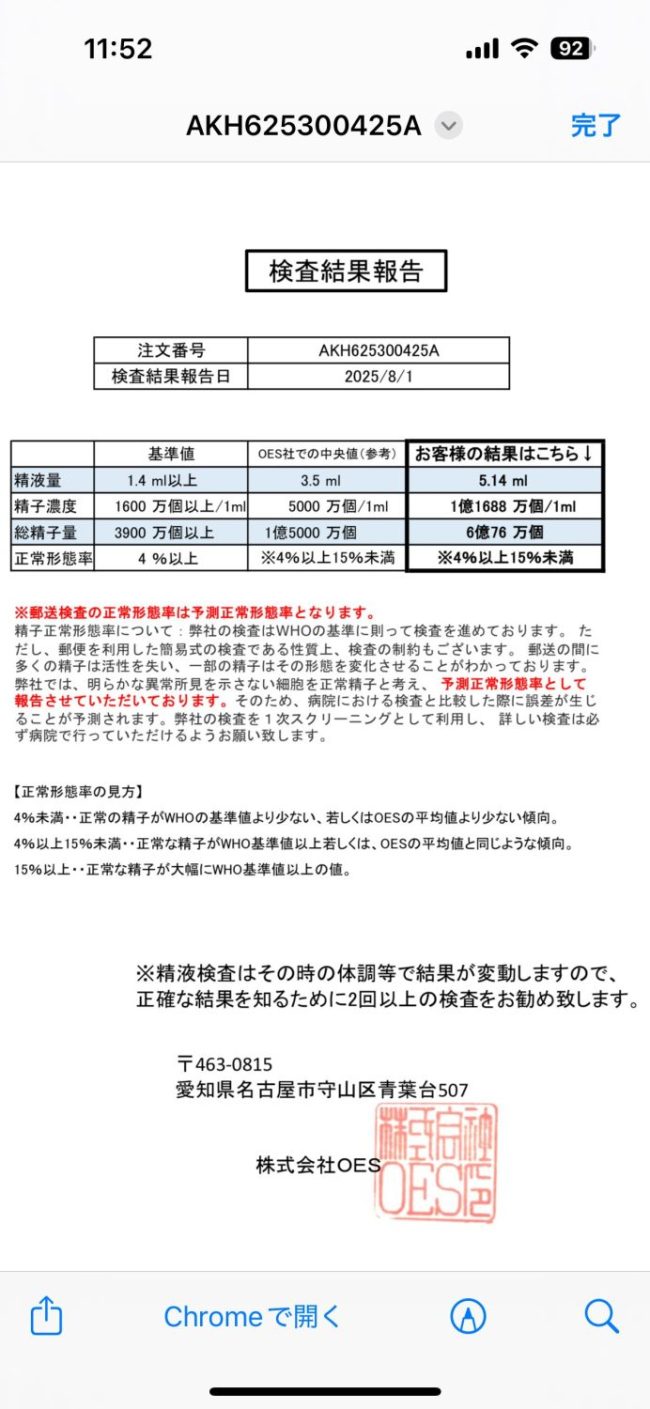 こちらはPDFファイルです。精液検査の結果表(PDF)